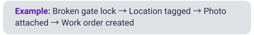 Identify maintenance needs and safety hazards during property walks. Location tags, photos, and timestamps attach to every work order automatically.