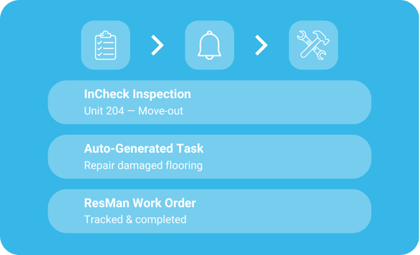 ResMan is great for work orders, and InCheck connects inspections to ResMan—so issues become tasks automatically, and nothing falls through the cracks.