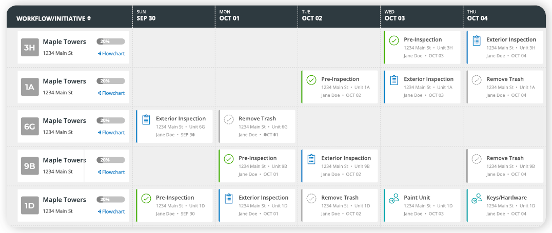 Schedule recurring inspections for HVAC, plumbing, and electrical. Auto-create tasks when issues are found—inspections happen on time, every time.